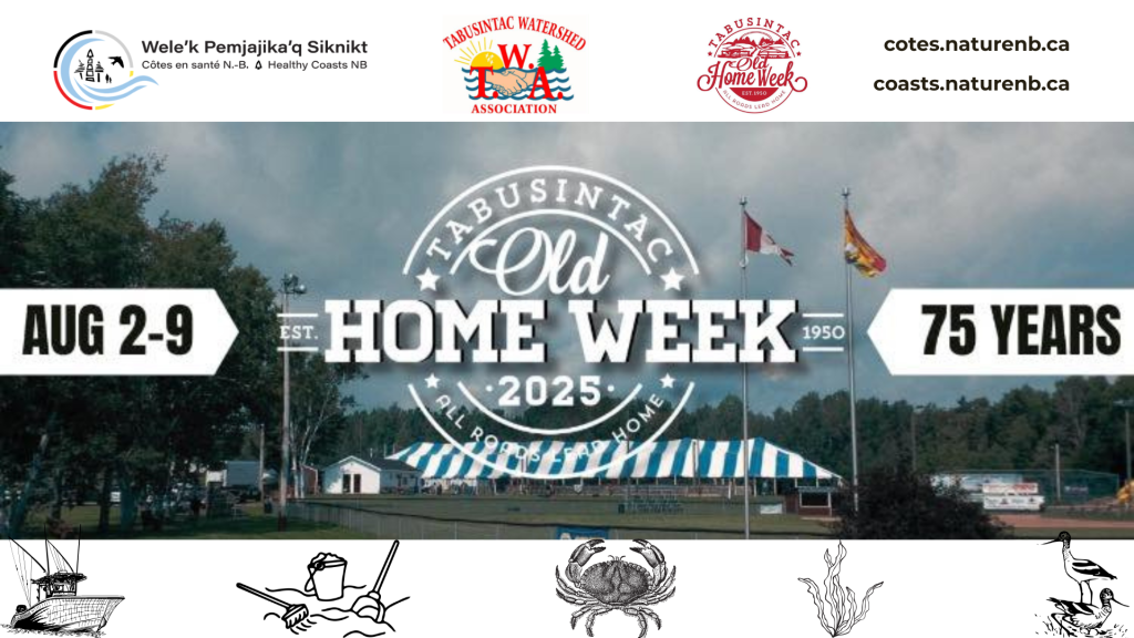 Joignez-vous à la Tabusintac Watershed Association (TWA) pour une journée de plaisir et d’apprentissage sur l’intendance du littoral à l’occasion de la Tabunsintac Old Home Week ! La Tabusintac Old Home Week est un festival qui a lieu tous les cinq ans à Tabusintac. Il a eu lieu pour la première fois en 1950 et nous prévoyons une semaine complète de plaisir du 2 au 9 août 2025 pour célébrer ses 75 ans !